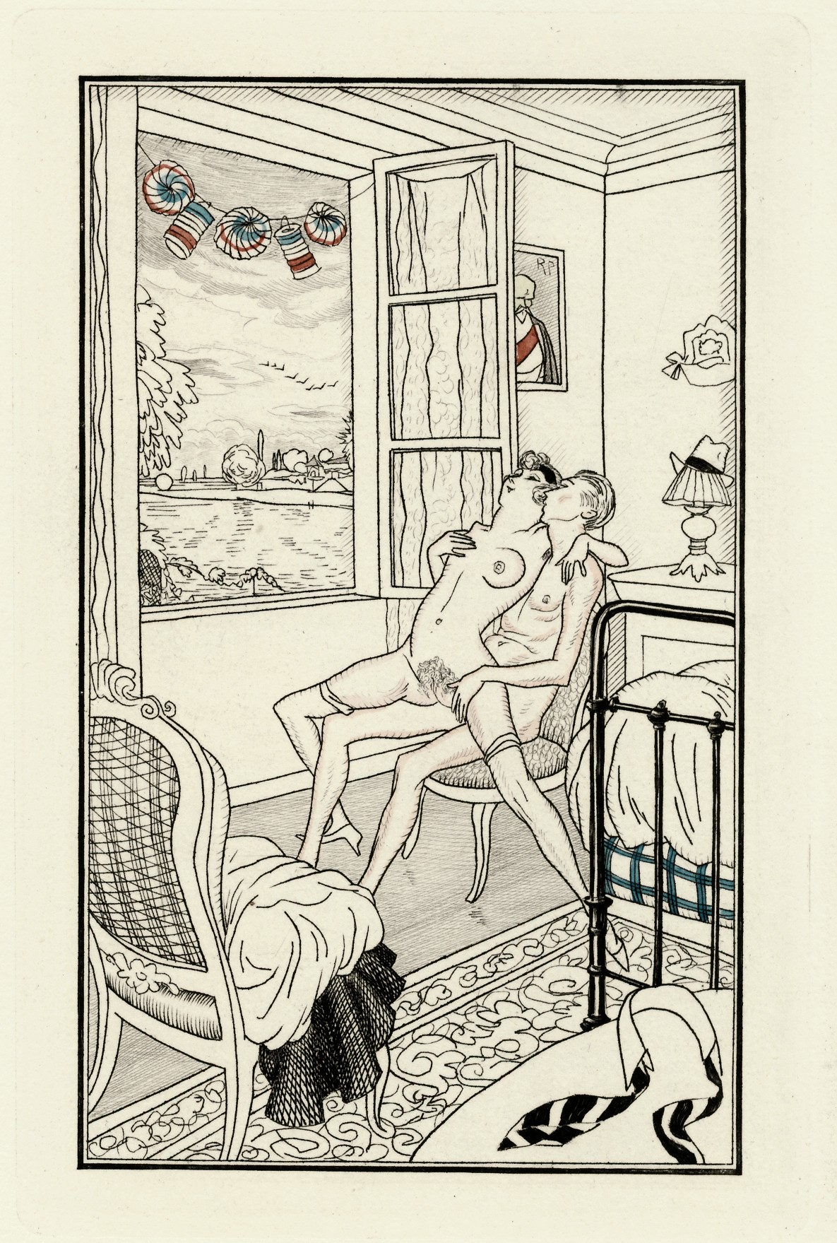 Superbe édition curiosa clandestine dans le plus pur style Art Déco. Les gravures de Jean Dulac sont d'une finesse et d'un raffinement subtil.